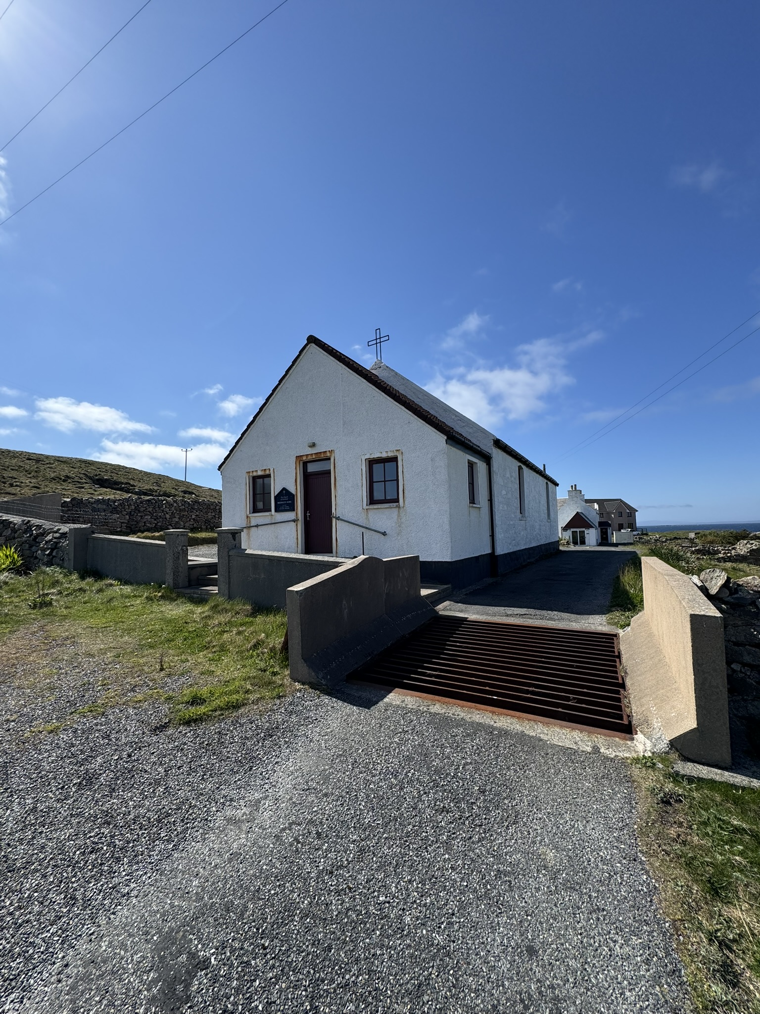 Situated on the island of Housay, this detached church boasts beautiful scenic views.