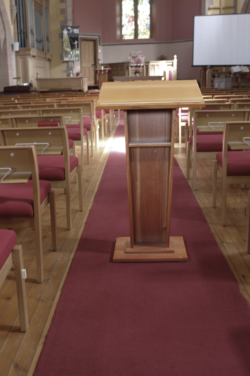 - standing upright wooden lectern/podium.